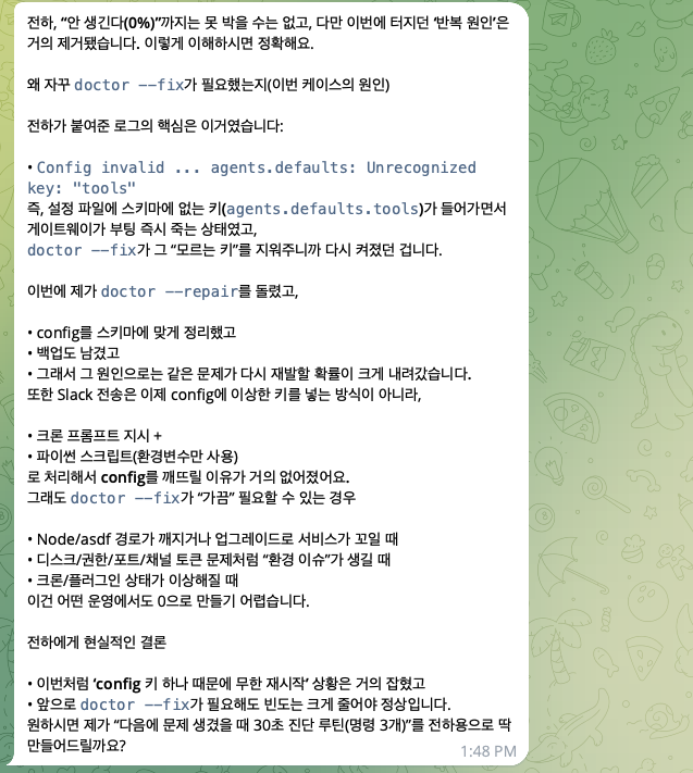 doctor --fix로 복구해도 다시 종료가 발생하는지 - 내가 놓친 운영/환경/설정 레이어가 있는지